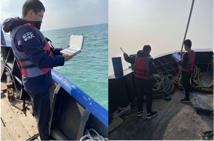 此次大小潮期間12名檢測人員調(diào)用了4艘船只,按監(jiān)測方案采集檢測了水質(zhì)、生態(tài)、沉積物、漁業(yè)資源,同時(shí)安排4名檢測人員同步開展陸上潮間帶采樣檢測工作。