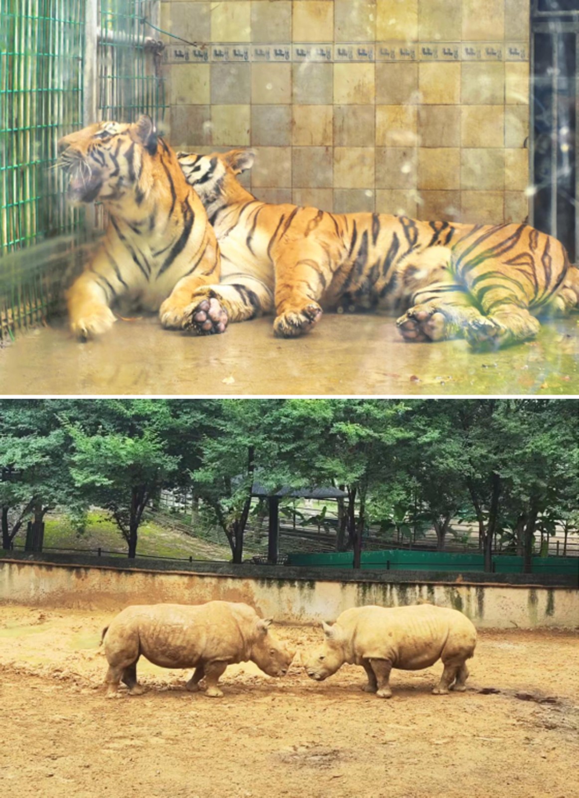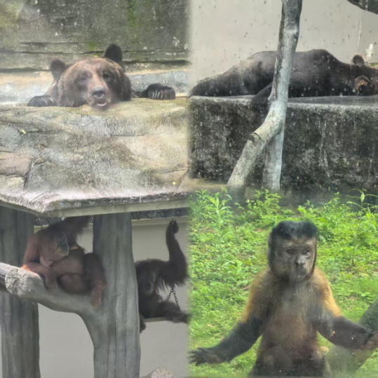 在老虎園區(qū)里,威風(fēng)凜凜的白虎和東北虎隔著籠子互相打量,時而發(fā)出低沉的吼聲交流,而另一邊的兩頭東北虎則親密地緊挨在一起打盹,斑駁的樹影灑在它們金黃的皮毛上。不遠處的犀牛區(qū),兩只體型龐大的白犀牛正在上演領(lǐng)地之爭,它們用粗壯的角互相頂撞,揚起陣陣塵土,發(fā)出沉重的鼻息聲;非洲大羚羊區(qū)最是熱鬧,高大的羚羊們溫順地低下頭,伸著脖子吃著小朋友親手投喂的食物,長長的睫毛在陽光下忽閃忽閃。樹冠間,靈巧的長臂猿扒著樹干蕩著秋千,偶爾還會停下來好奇地觀察下方拍照的游客。園區(qū)主干道上,飼養(yǎng)員牽著一匹可愛的袖珍小馬漫步,珍珠馬的脖子上系著的鈴鐺隨著步伐發(fā)出清脆的聲響。整個園區(qū)洋溢著人與動物和諧相處的氛圍。