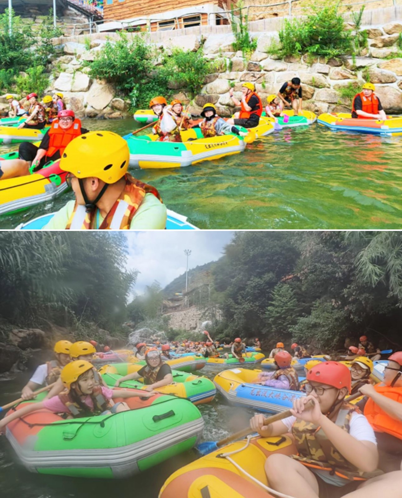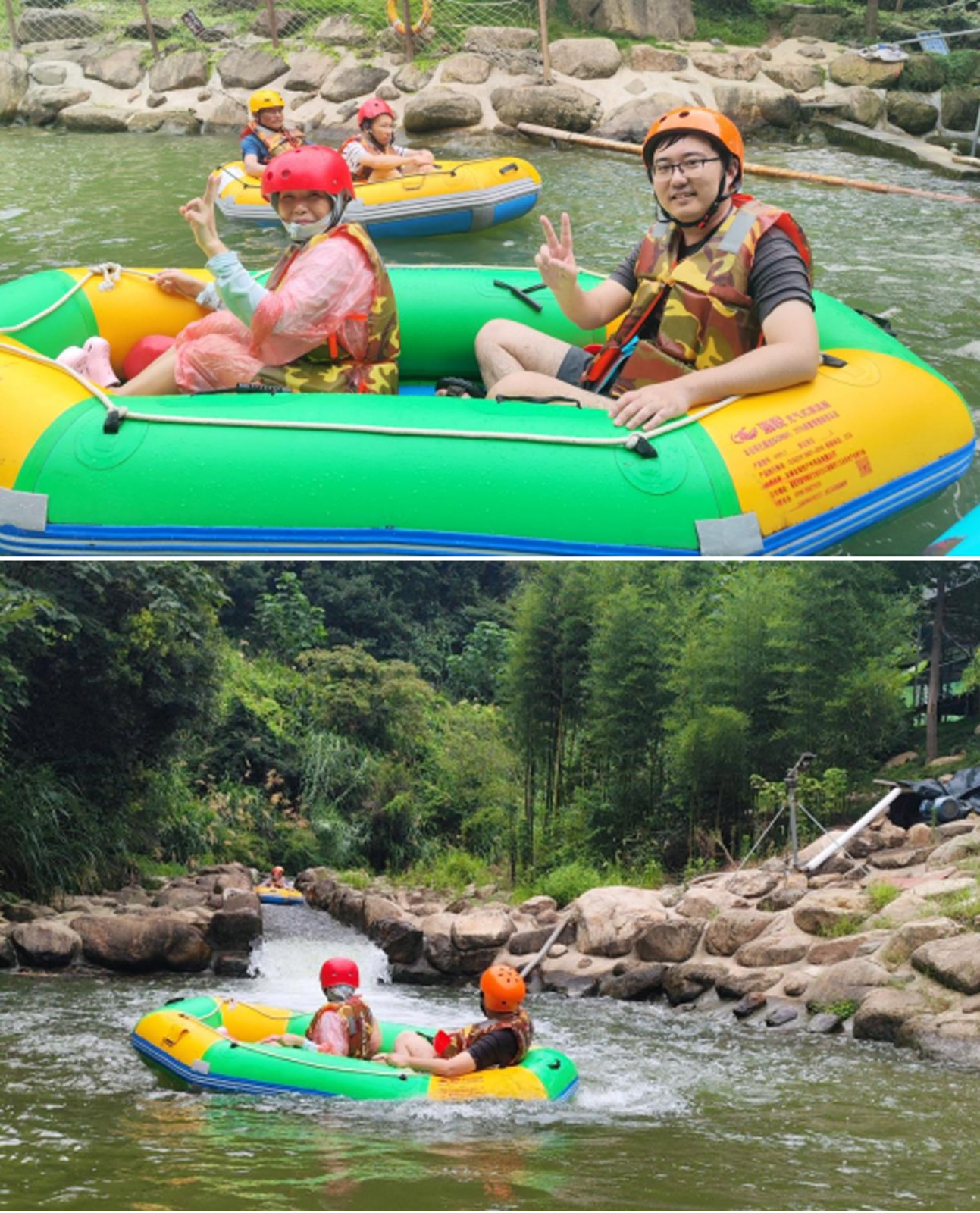 小伙伴們換上裝備,踏進皮筏,兩兩一隊,水瓢、水槍齊上陣,小伙伴們瞬間化身漂流勇士,寧靜的河道霎時間成為潑水狂歡的戰(zhàn)場,歡聲笑語與水花四濺交織在一起。清涼的溪水驅(qū)散了夏日的燥熱,激烈的“對戰(zhàn)”更點燃了團隊的活力與激情,一場?酣暢淋漓的夏日消暑大戰(zhàn)?讓大家徹底放飛自我,拉近了彼此距離,也為第一天的行程注入了無限活力。